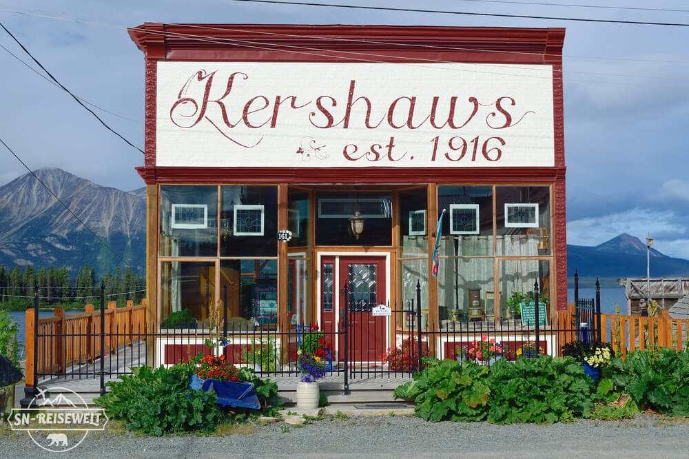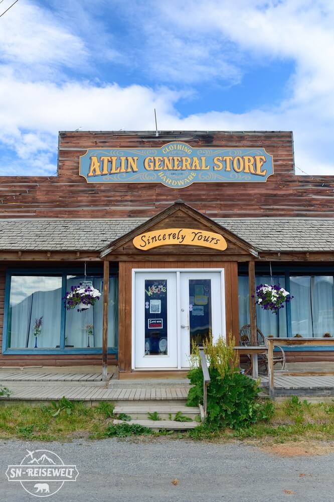 Am Ende der Straße landen wir in einem ehemaligen Goldgräbernest, das sich Atlin nennt. Auf den ersten Blick könnte man vermuten, in einer Geisterstadt der Goldrauschzeit angekommen zu sein. Die malerische Idylle am See umrahmt von hohen Bergen machen Atlin zu einem Juwel des Nordens. Dieser Ort entspricht dem Klischee von einem Leben mitten im Busch.