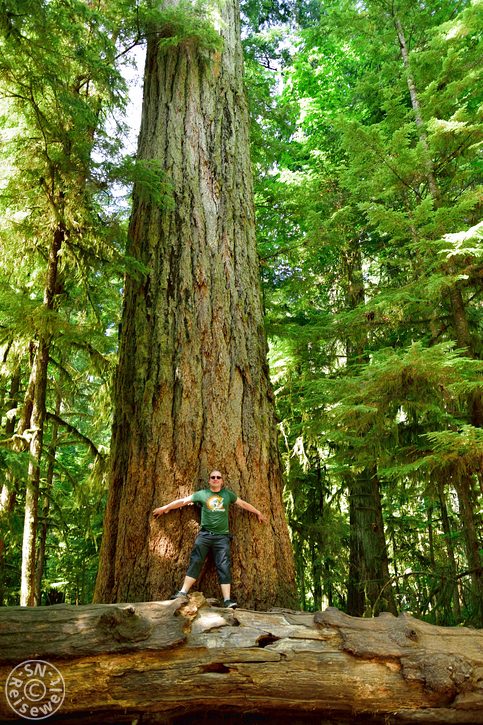 Auch heute erwartet uns ein erlebnisreicher Tag. Gleich nach dem Frühstück beschließen wir, an die Westküste zu fahren. Inmitten der Inselwelt auf dem Weg nach Tofino zieht es uns zunächst zum Cathedral Grove, einer der letzten Regenwälder auf Vancouver Island. Dieser liegt nur eine Autostunde von unserem Hotel in Courtenay entfernt. Der Pacific Rim Highway 4 ist die einzige Straße, die dorthin führt. Mit dem Wetter haben wir wieder Glück. Strahlender Sonnenschein, wohin man sieht. Das Thermometer klettert bereits am Vormittag auf bis zu 30 Grad Celsius. Bei den Temperaturen kommt man ganz schön ins Schwitzen. Eine Weile später machen wir Halt am Cathedral Grove, der Teil des MacMillan Provincial Park ist. Am Ausflugsziel tummeln sich bereits viele Touristen. Deshalb müssen wir erstmal nach einem Parkplatz suchen. Mit der Einsamkeit der letzten Tage hat das nur noch wenig gemeinsam.